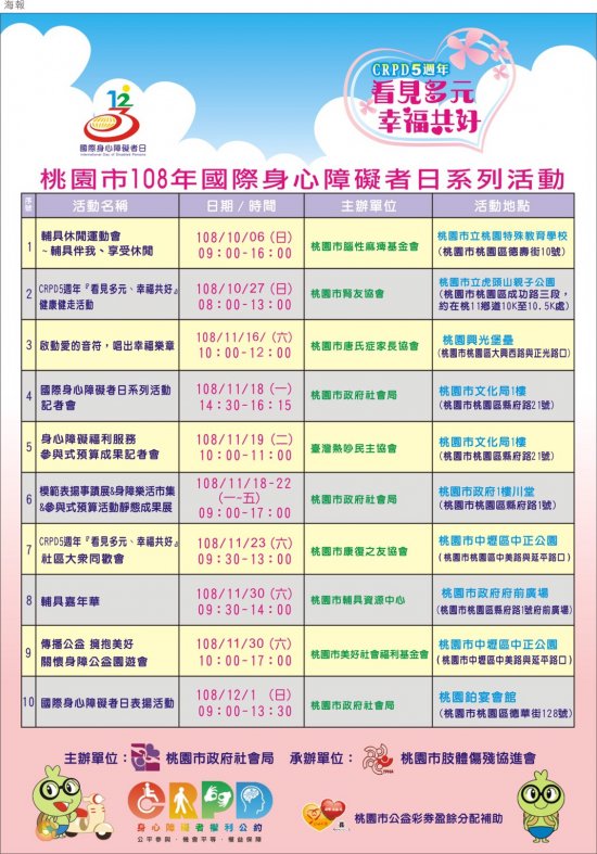 主旨:轉知本市 108 年國際身心障礙者日系列活動宣導ㄧ案