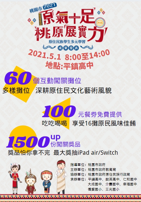 依據桃園市 2021「原氣十足-桃原展實力」原住民族學生成果發表實施計畫辦理。 |